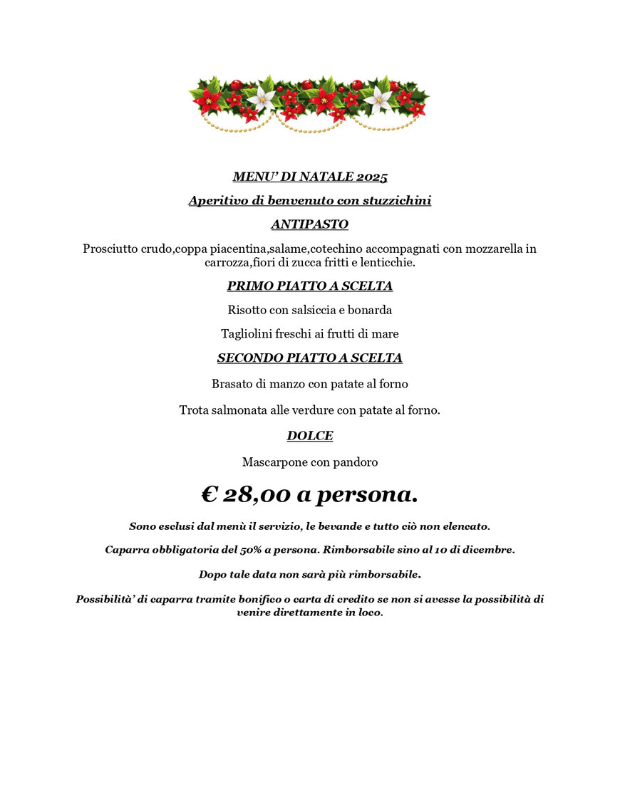MENU' FISSO LA DOMENICA(SOLO PRANZO)